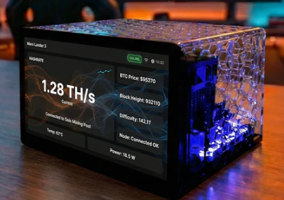 The Mars Lander 3 (illustrated in the figure to the left) is an advanced model that includes everything necessary for Bitcoin mining in one single package. This product is not only a solo miner but also a full Bitcoin node. Contrary to earlier devices that solely focused on mining operations, Mars Lander 3 gives the ability to verify the whole chain and mine into your personal wallet without involving any other third parties, such as pools or middlemen. The specifications include a hashing power of 1.2TH/s, in addition to a 2TB SSD, which will hold the entire blockchain and 16GB of RAM. This Mars Lander 3 will be launched in spring 2026 at a price point of $1,999.99.